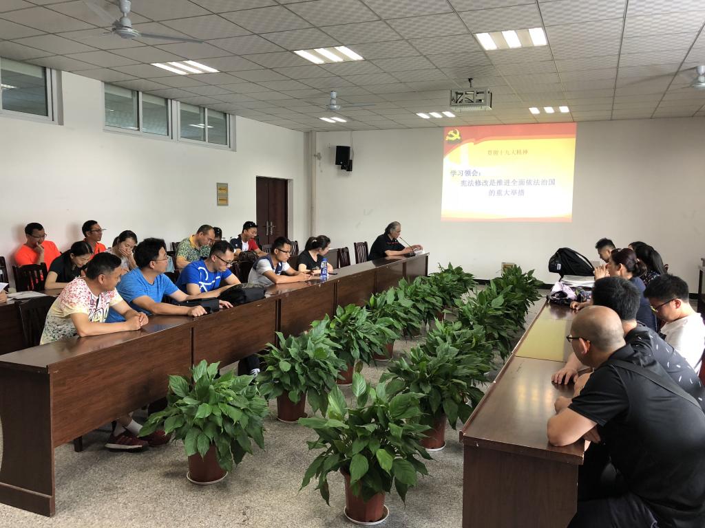 2018年5月16日,公司组织全体党员学习领会《宪法修改是推进全面依法治国的重大举措》一文,会议由漆勇书记主持。