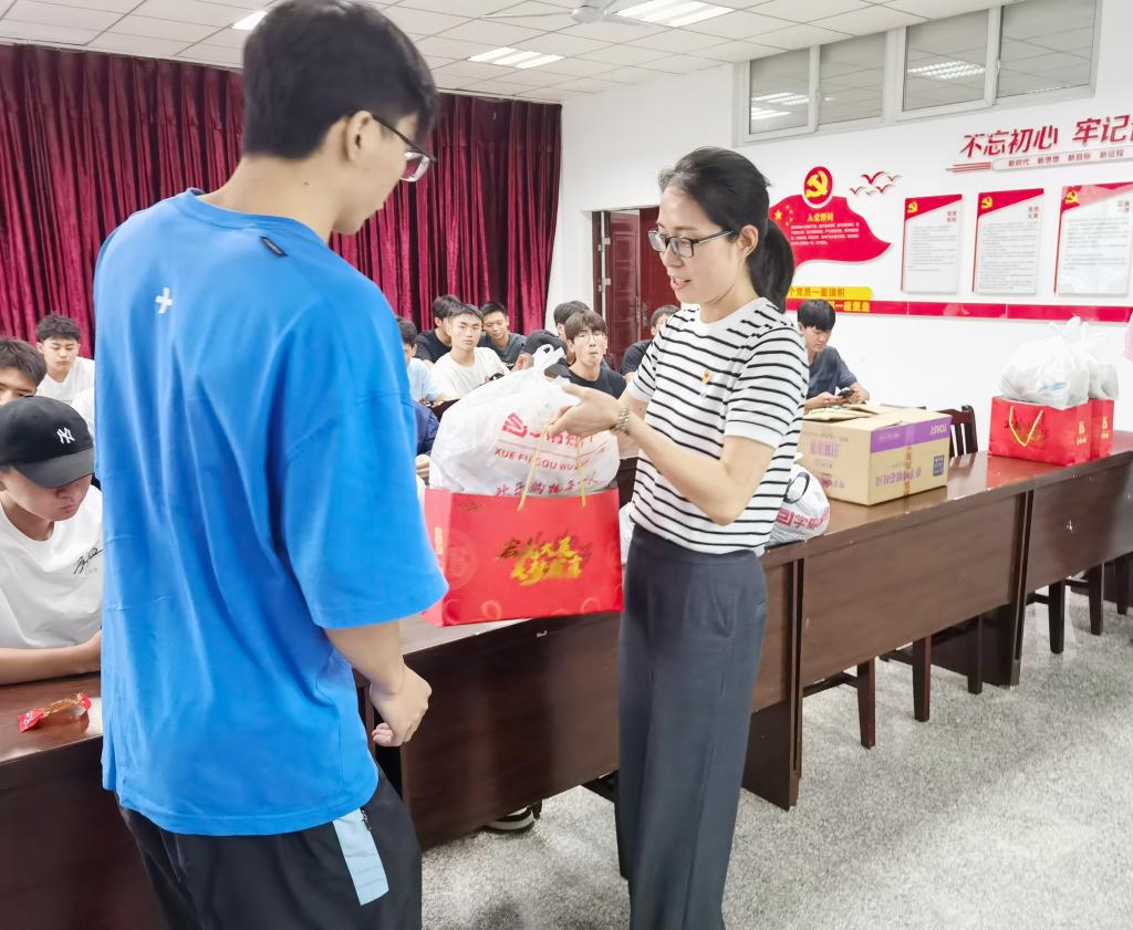 冉书记表示,同学们要深入学习贯彻习近平总书记关于“家国情怀、传统节日文化”的重要精神,弘扬优秀传统文化。在新时代烨烨生辉,是每位青年老员工身上肩负的使命。随后,冉书记为各年级员工代表发放牛奶、咸鸭蛋及零食大礼包。