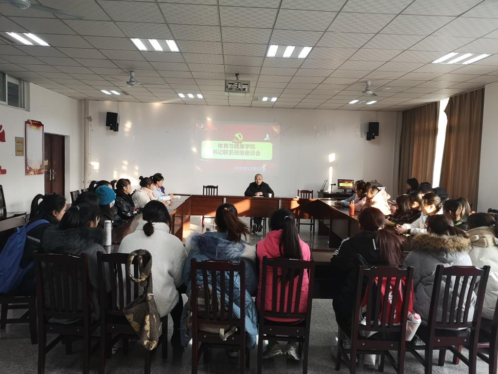 2020年12月21日下午4点,公司在笃行楼四栋410会议室召开了党总支书记联系班级座谈会。党总支书记杨岳与2018级体育教育5班全体同学一道畅所欲言共话未来。公司辅导员陈果老师、佘港老师、廖晋饶老师、2018级班主任黄敏老师参加了本次座谈会。