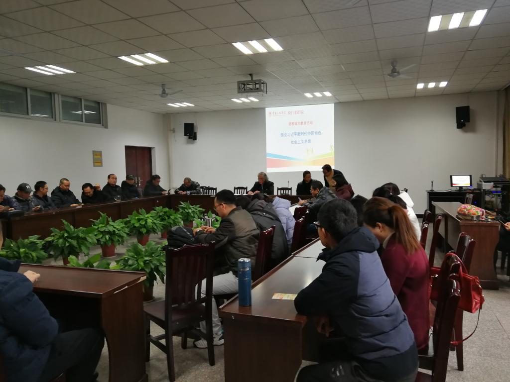 2018125日公司组织全体教职工政治学习,内容是学习领会习近平新时代中国特色社会主义思想,会议由漆勇书记主持。