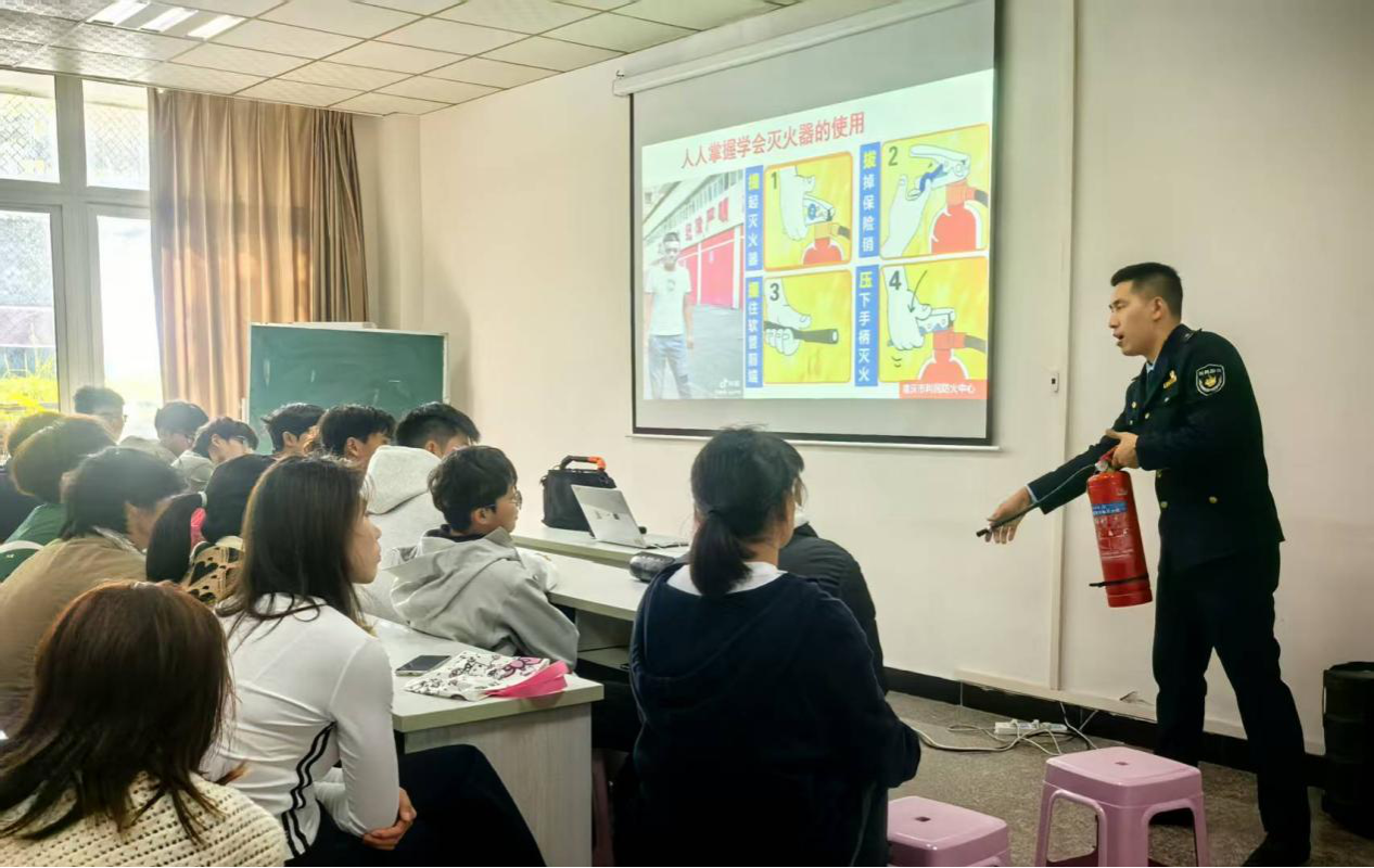 2025年11月13日,世界杯官方网站入口2026在笃行楼4栋102教室开展消防安全知识培训,2025级全体员工参加。利民消防中心的黎教官为全体员工系统讲解了火灾防范与应对知识,并重点剖析了教学楼、寝室、实验室等校园场所的火灾安全隐患。理论宣讲后,黎教官现场指导员工进行了灭火器的操作演练。