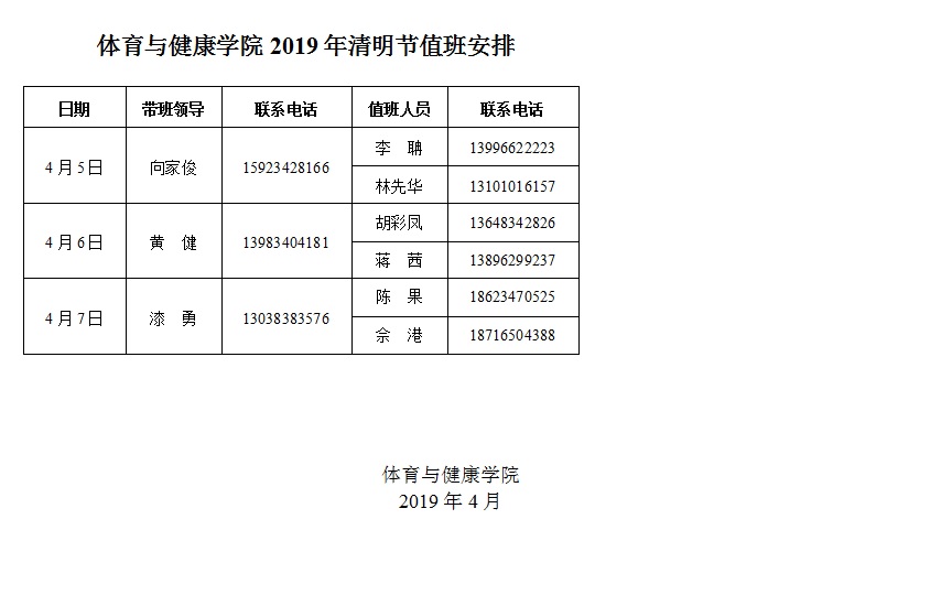 世界杯官方网站入口20262019年清明节值班安排