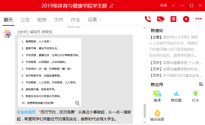 一粒米、千滴汗,粒粒粮食汗珠换!尽管我国粮食生产连年丰收,但对粮食安全还是始终要有危机意识。为强化员工节约粮食、珍惜粮食的精神意识,公司通过召开“粒粒皆辛苦、滴滴全是爱”主题班会、“厉行节约、反对浪费”主题周前会、QQ群转发“珍惜粮食”宣传标语、微信群转发相关“节约粮食”主题文章等形式,深入贯彻员工节约意识,让员工明白节约是一种美德,从身边的小事做起,节约一度电、一滴水、一粒米入手,养成勤俭节约的好习惯。