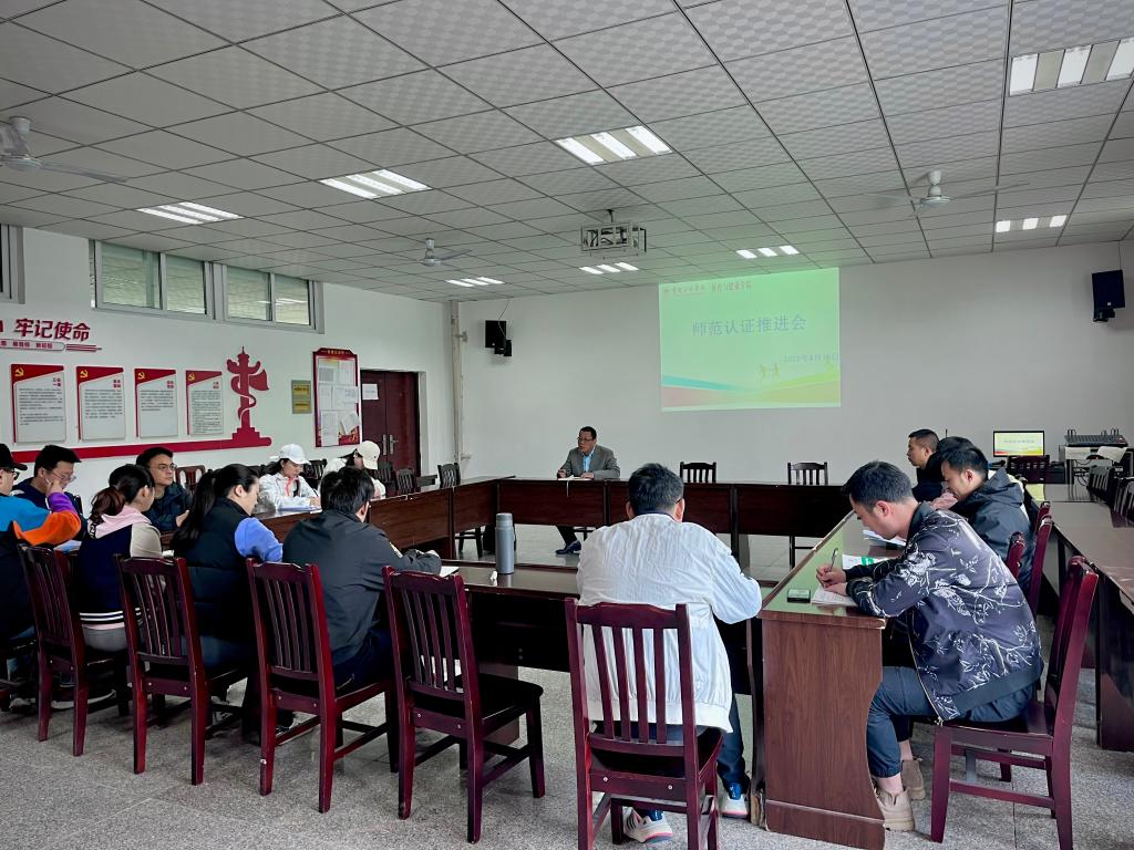 2022年4月18日上午9点,世界杯官方网站入口2026于笃行楼4栋410会议室召开了师范认证工作推进会,会议由副经理刘铮主持,师范专业认证工作小组及部分教师参会。